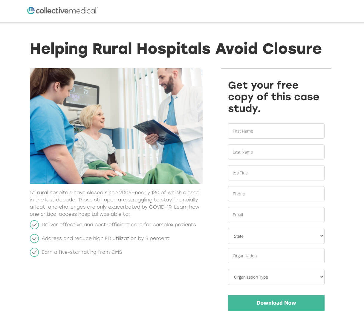 Becker’s Healthcare is a go-to source for healthcare decision makers with over 1 million subscribers across its e-newsletters. The ad shown below was ran in Becker’s Hospital Review, which drove users to a landing page where they could download the case study.